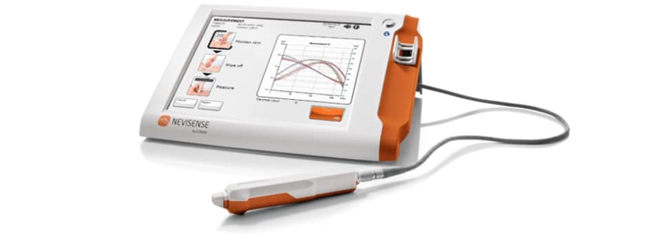Nevisense ist ein modernes Untersuchungsgerät, das Ärztinnen und Ärzten hilft, verdächtige Muttermale oder Hautveränderungen noch besser einzuschätzen. Es dient der Früherkennung von schwarzem Hautkrebs (Melanom) und der häufigsten Form des weißen Hautkrebses (Basalzellkarzinom) und ergänzt die üblichen Untersuchungsmethoden wie die Betrachtung mit dem Dermatoskop.